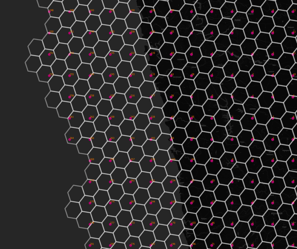 And finally, we can fill up the hexagons at resolution 8 with obtained numbers: