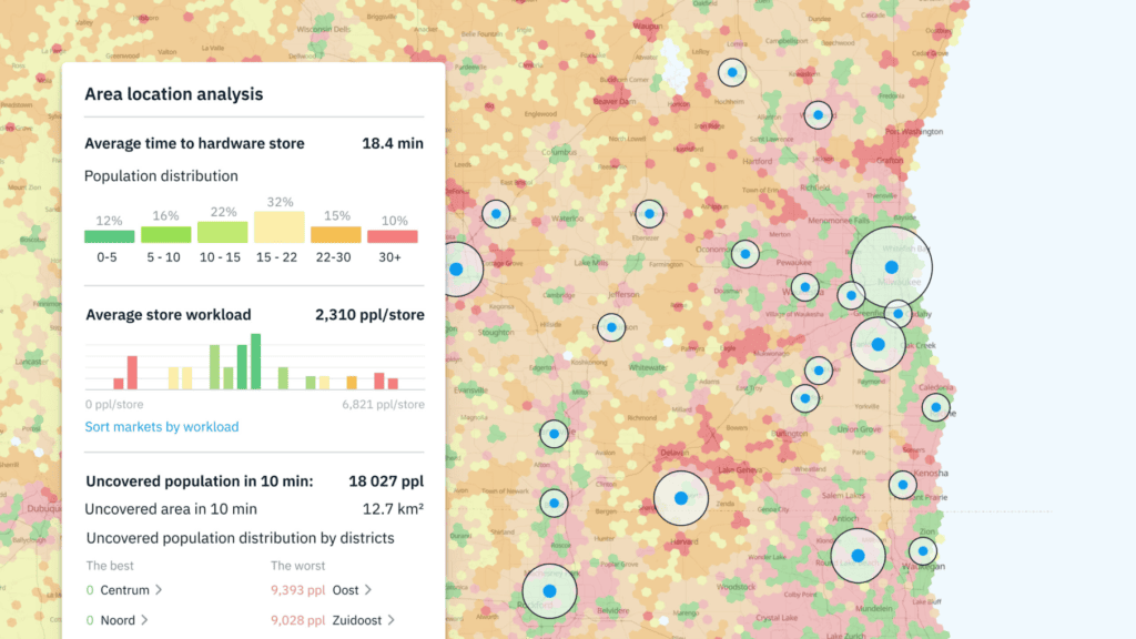 Kontur can offer Site Selection Analysis services, catchment area analysis, and correlation explorer services.